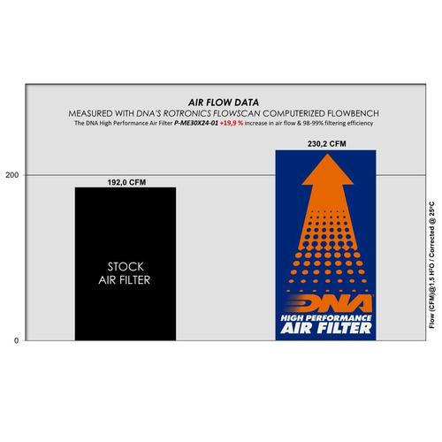 Le filtre DNA adoucira egalement le flux d'air lors de son passage a travers le filtre, en reduisant les turbulences et en envoyant un air propre et frais vers l'admission du moteur, augmentant le couple et la puissance Cela explique pourquoi nous constatons une diminution de la puissance de sortie lors du test d'un velo ou d'une voiture sur le dynamometre "sans" filtre car la circulation de l'air dans la boite a air est perturbee et le resultat est une turbulence et une faible puissance de sortie.